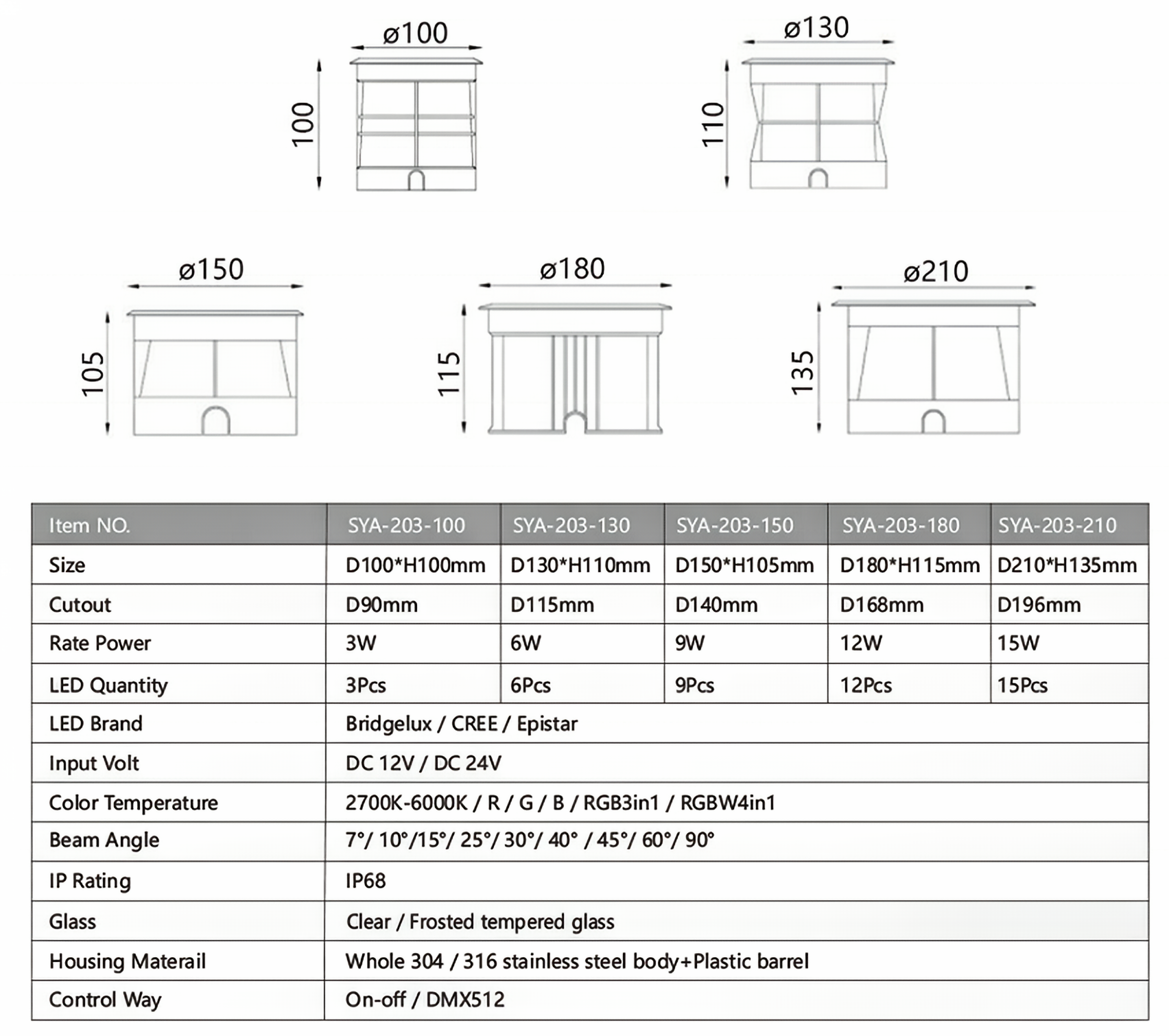 Lamp of material: 304 stainless steel,high transparent toughened glass,anti-aging silicone seal.