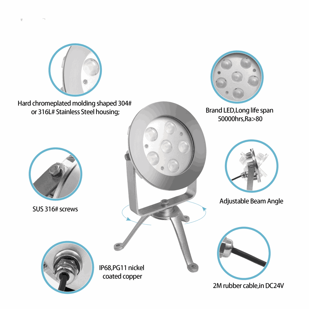 Stainless steel LED underwater spots